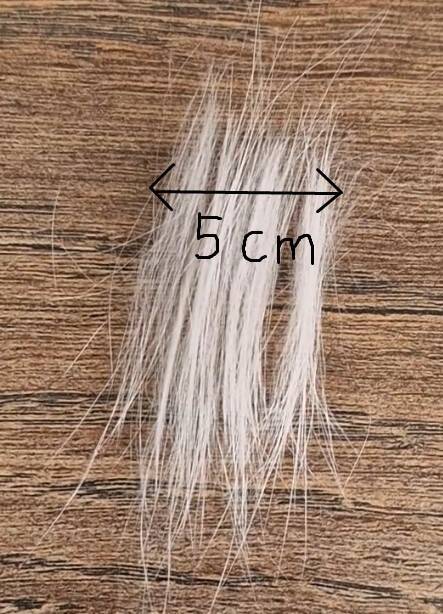 Voor 1 ring of halsketting met katten of hondenhaar gebruik ik een plukje haar wat ongeveer 5 cm breed is, wanneer je de haren naast elkaar legt. Als de haren korter zijn als 3 cm, mag dit wat breder zijn.